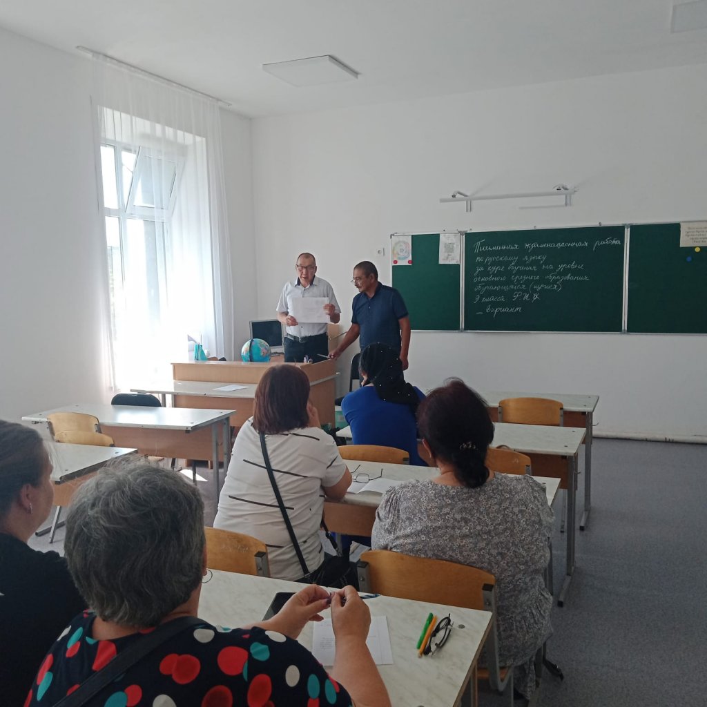 2025 жылғы 2 маусымда кешкі мектепте қорытынды емтихандарды өткізу кестесіне сәйкес 9 сынып оқушылары арасында Орыс тілі пәнінен емтихан басталды. Барлық оқушылар емтиханға қатысты. Емтихан алушы ассистенттермен бірлесіп емтихан басталар алдында нұсқама өткізді.