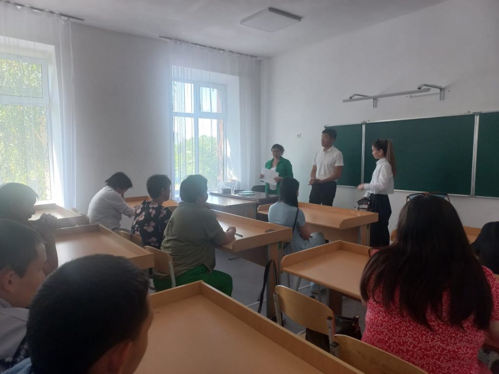 2025 жылғы 10 маусымда кешкі мектепте қорытынды емтихандарды өткізу кестесіне сәйкес 9 сынып оқушылары арасында Қазақ тілі және әдебиеті пәнінен емтихан өткізілді. Емтихан алушы ассистенттермен бірлесіп емтихан басталар алдында нұсқама өткізді.