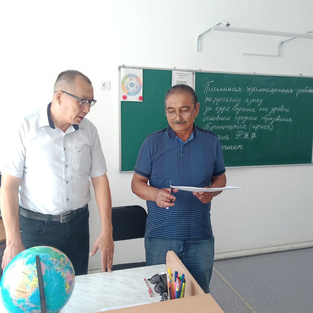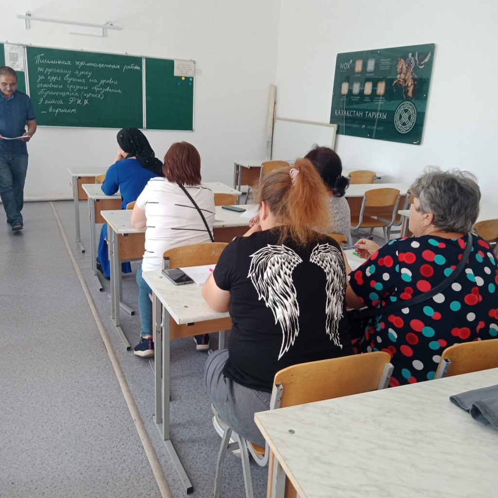 2025 жылғы 2 маусымда кешкі мектепте қорытынды емтихандарды өткізу кестесіне сәйкес 9 сынып оқушылары арасында Орыс тілі пәнінен емтихан басталды. Барлық оқушылар емтиханға қатысты. Емтихан алушы ассистенттермен бірлесіп емтихан басталар алдында нұсқама өткізді.