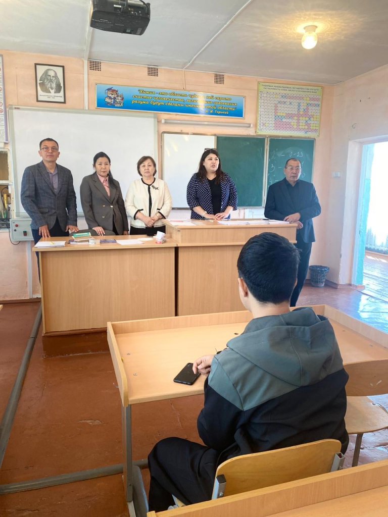 2024 жылдың 31 мамырында 11 сынып арасында қорытынды аттестаттауды өткізу кестесіне сәйкес кешкі мектепте алгебра және анализ бастамалары емтиханы басталды. Емтихан өткізу критерийлері сақталды. Барлығы 11 сынып оқушылары -42. Емтиханға барлық оқушылар қатысты.