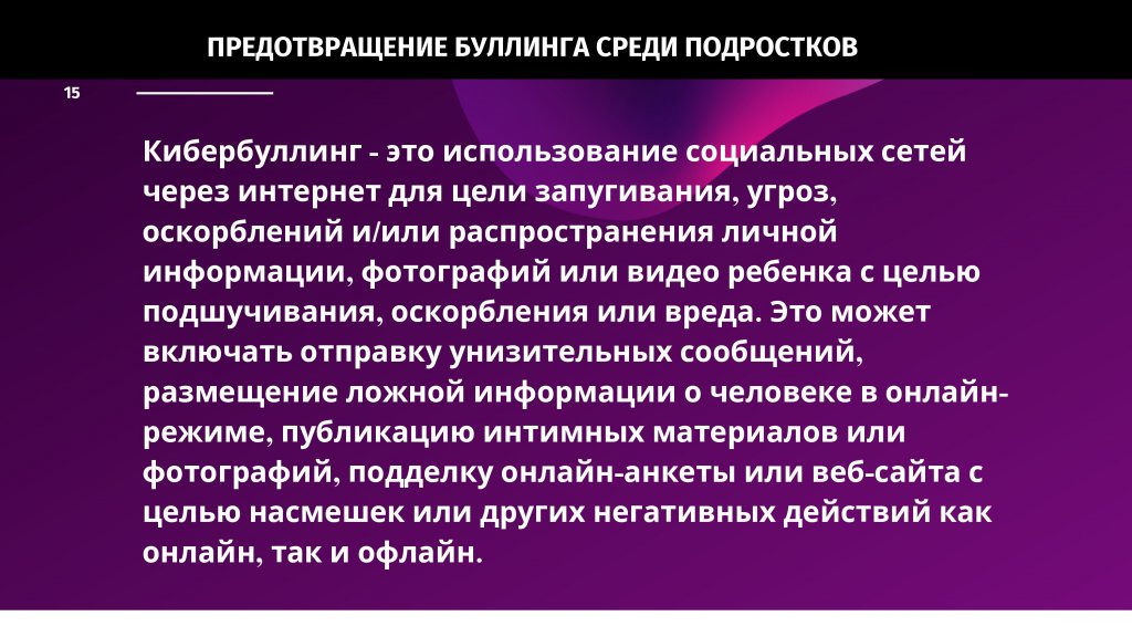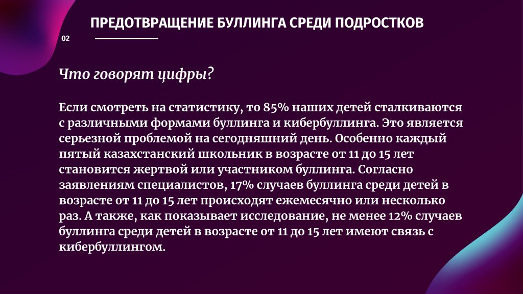 Кешкі мектепте 10-сыныпта "Буллинг:себептері мен салдары" тақырыбында сынып сағаты өтті. Сабақтың мақсаты оқушылардың қорқыту, психологиялық зорлық-зомбылық сияқты ұғымдарға теріс көзқарасын қалыптастыру болды. Оқушылар қорқытуға байланысты жағдайлардан шығу жолдары туралы өз ойларын білдірді. Соңында буллинг, кибербуллинг ұғымдары бекітіліп, осы құбылыстар адамның физикалық және психологиялық денсаулығына теріс әсер етеді деген қорытындыға келді.